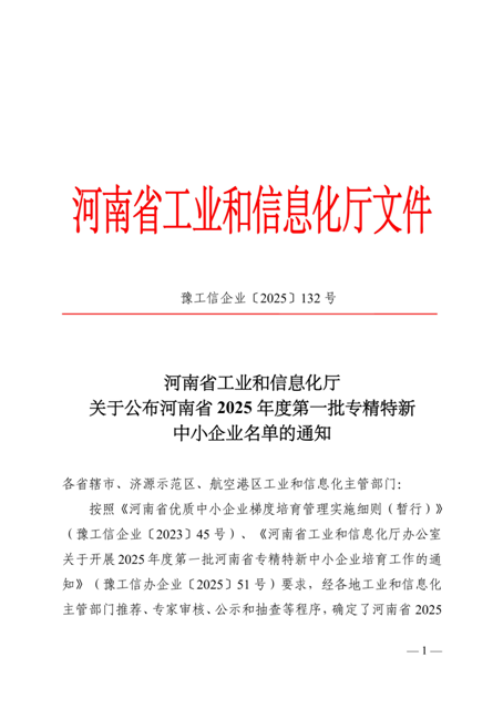 建材院獲批“河南省專精特新中小企業(yè)”認(rèn)定 2025-07-03